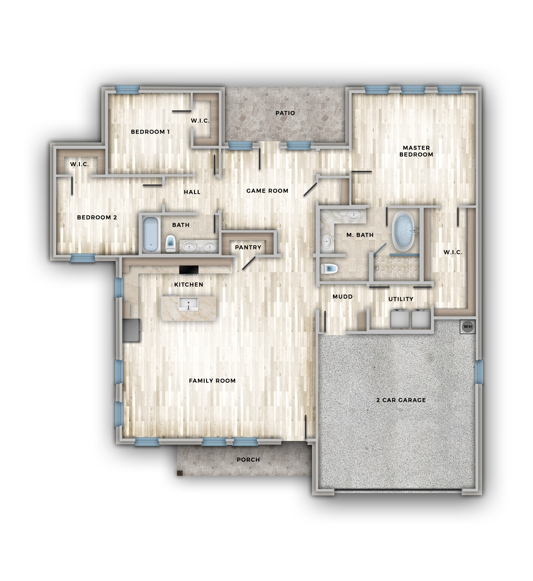 - Wall Finish: Brick & Stone Veneer