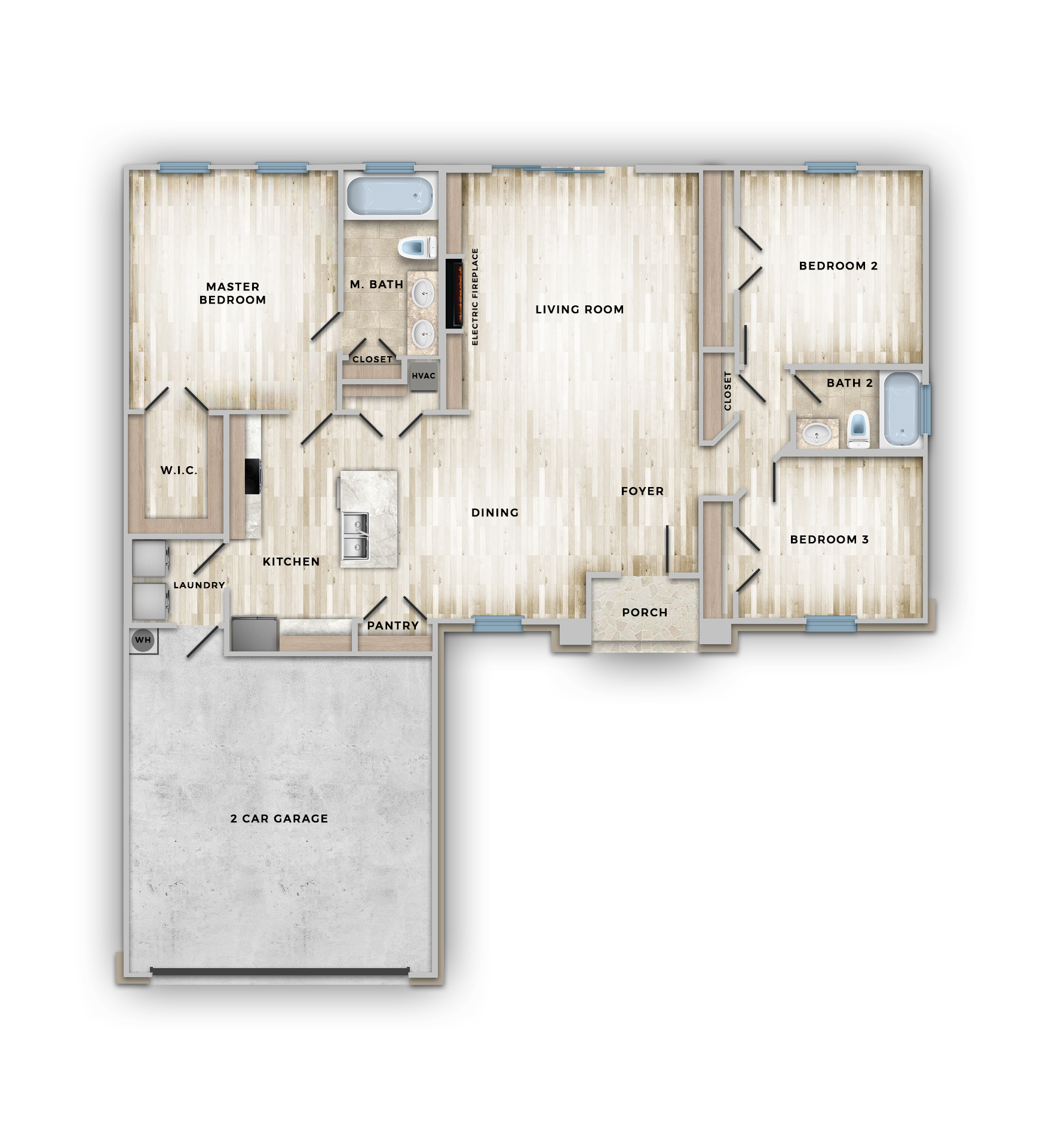 - Main living area ceiling height: 10'-0"