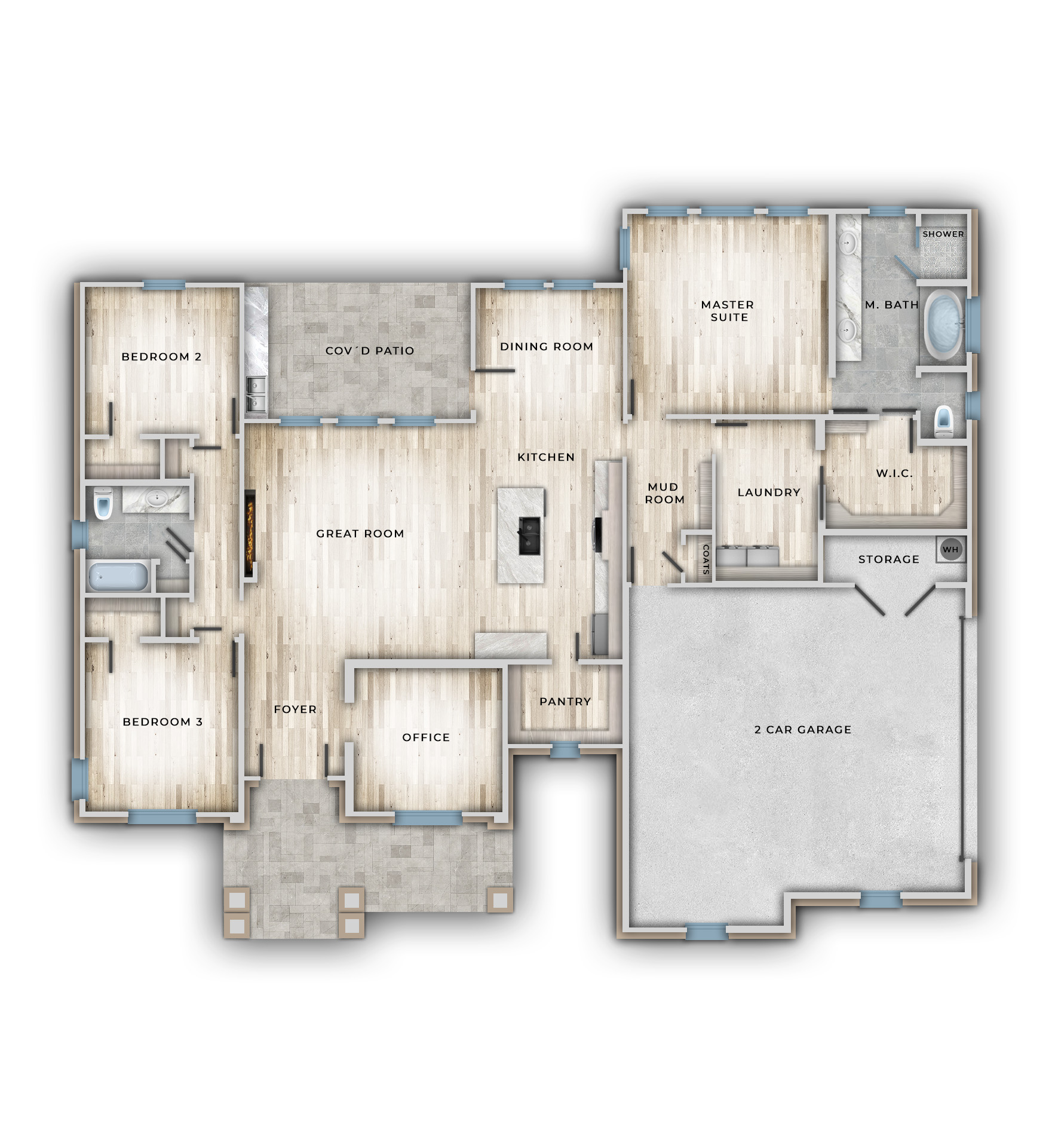 - Main living area ceiling height: 13'-0"