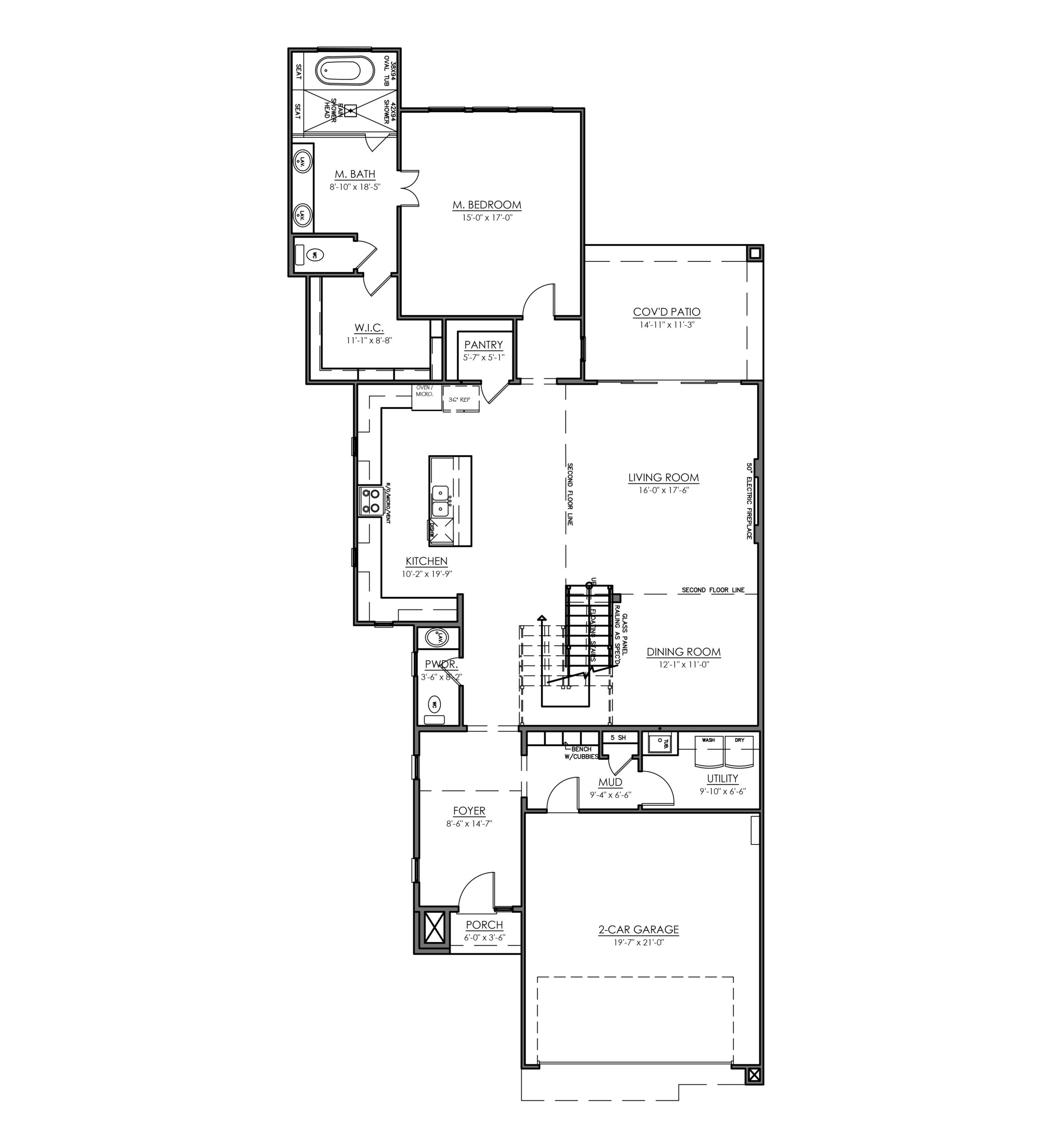 - Main living area ceiling height: 10'-0"